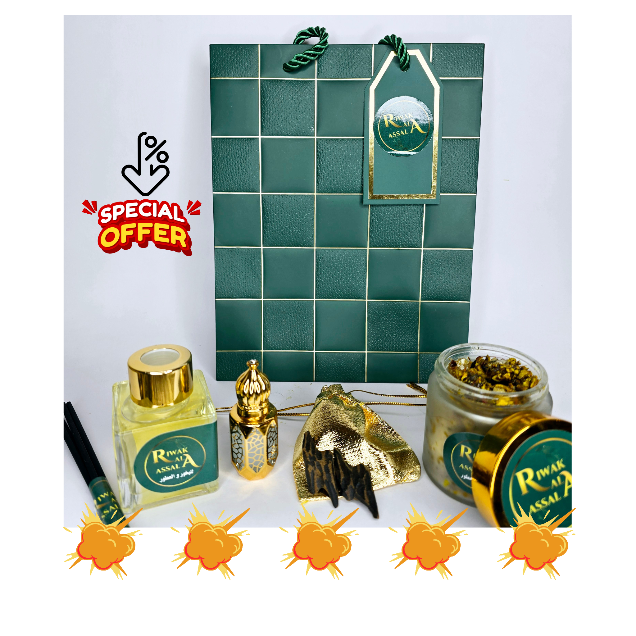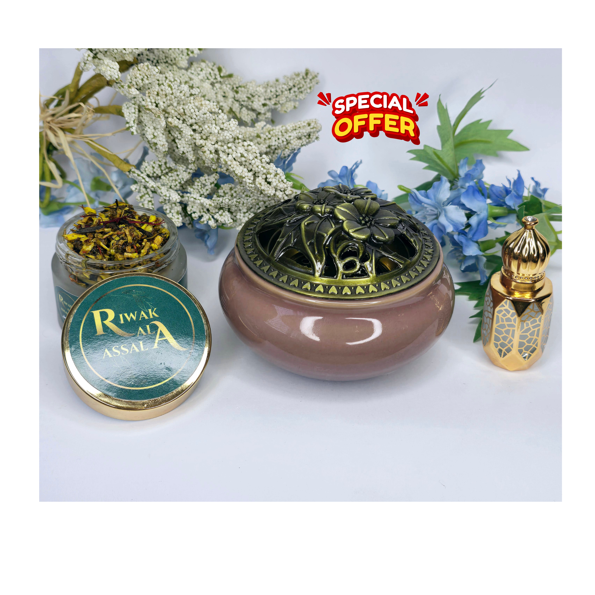 Pack Prestige: 50g Sarghina + 4g Oud + Diffuseur au choix + Dihn ou Musc au choix
